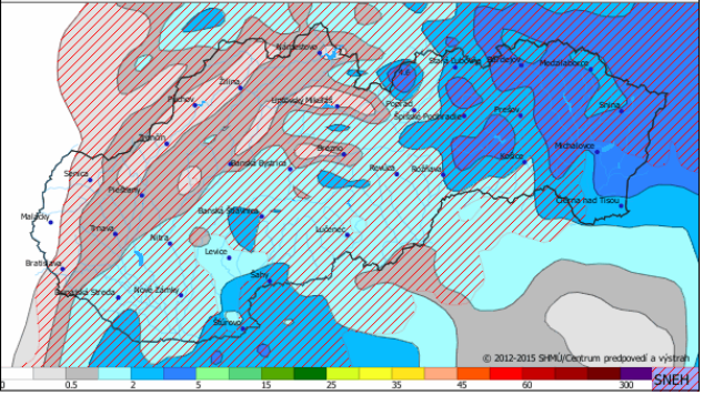 V sobotu očakávame tvorbu snehovej pokrývky v regiónoch nad 300 metrov nad morom - od Oravy po Zamagurie až 10 - 15 cm, inak prevažne 1-5 cm, bez snehovej pokrývky by mali skončiť regióny do 300 m n. m.