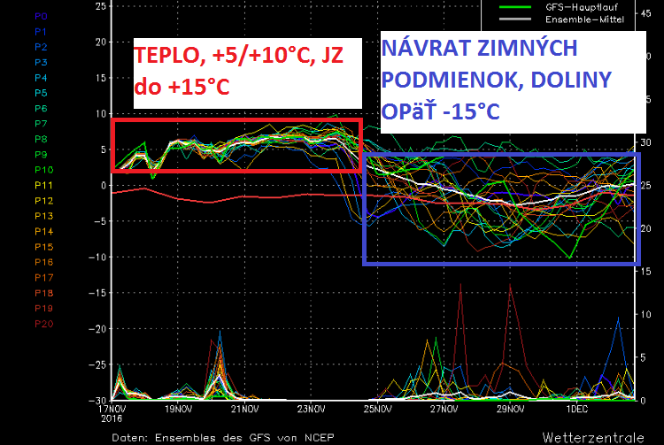 Očakávané zmeny podľa bodového GFS ENS pre sever SR v skratke /http://old.wetterzentrale.de/topkarten/fsavnmgeur.html/