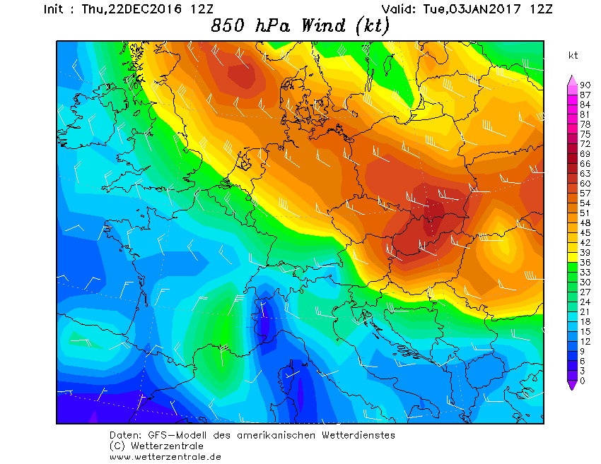 Na horách to bude začiatkom roka zdá sa, dosť nebezpečné, takýto orkán očakávajú modely na 2. a 3. januára, búrlivý vietor nás bude trápiť aj v nížinách /http://old.wetterzentrale.de/topkarten/fsavneur.html/