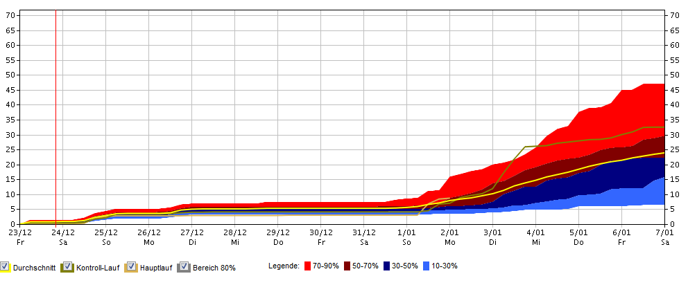 Obr.: Švajčiarski meteorológovia vydali predpoveď očakávaného sneženia do 6. januára - takto vyzerá graf (meteocentrale.ch)