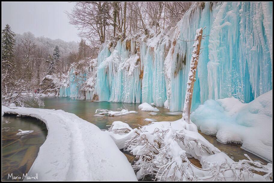 Obr.: Silné mrazy trápia posledné týždne aj Balkán, takto rozprávkovo zamrzli Plitvické jazerá v Chorvátsku /https://www.facebook.com/severeweatherEU/