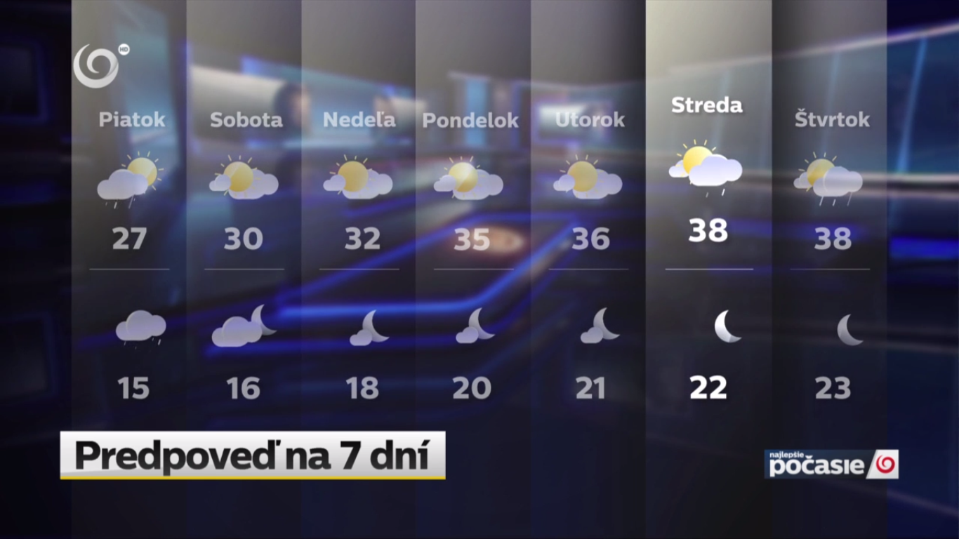 Obr.: Meteorológovia najlepšieho počasia TV JOJ očakávajú podľa najnovšej predpovede tiež už o niekoľko dní +38°C /https://najlepsiepocasie.joj.sk/