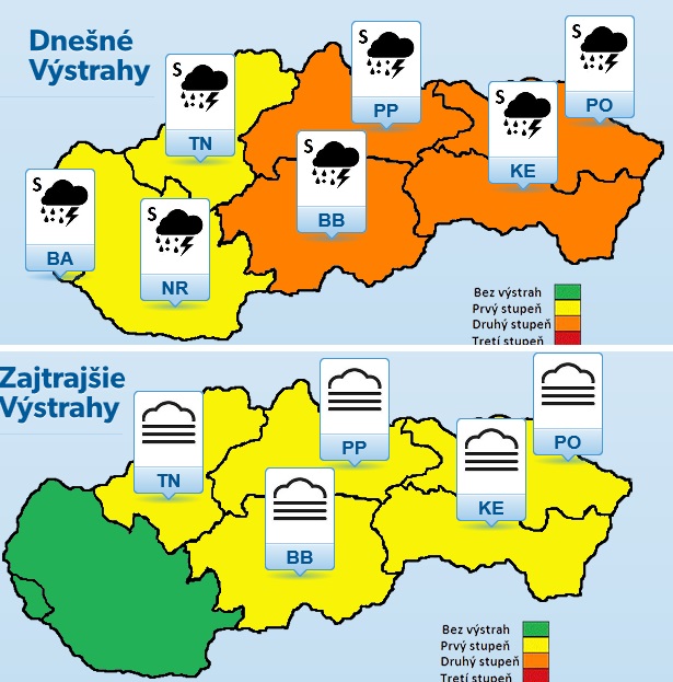 Obr.: V pondelok ešte doznejú silné búrky - najmä vo východnej polovici. Od utorka môžu prekvapiť ranné hmly /http://meteoinfo.sk/vystrahy/