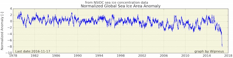 Obr.: Aj aktuálna anomália globálneho morského zaľadnenia (Arktída + Antarktída) nám napovedá, že niečo nie je v poriadku)