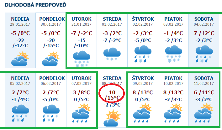 Obr.: Dlhodobá predpoveď zo soboty to videla takto /http://meteoinfo.sk/predpoved-15-dni/