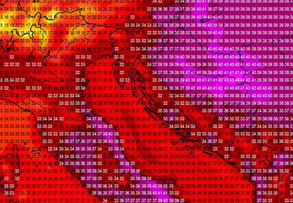 Obr.: Vyše 40-stupňové teploty by mali zaplaviť celé Maďarsko /https://www.facebook.com/ReteMeteoAmatori/