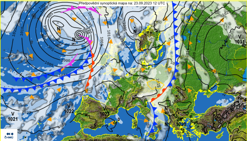 Obr. 1: Poveternostná situácia k termínu sobota (23. 09. 2023); zdroj: chmi.cz