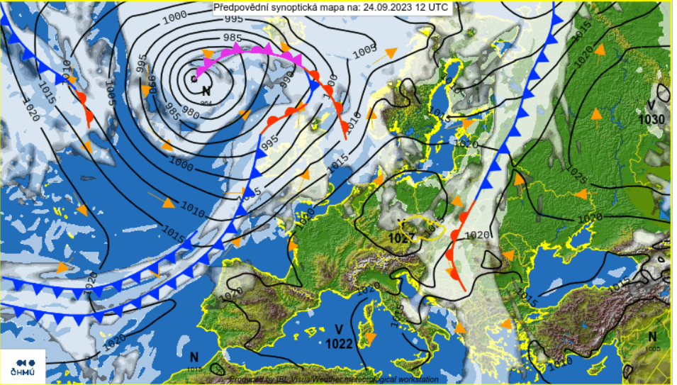 Obr. 2: Poveternostná situácia k termínu nedeľa (24. 09. 2023); zdroj: chmi.cz