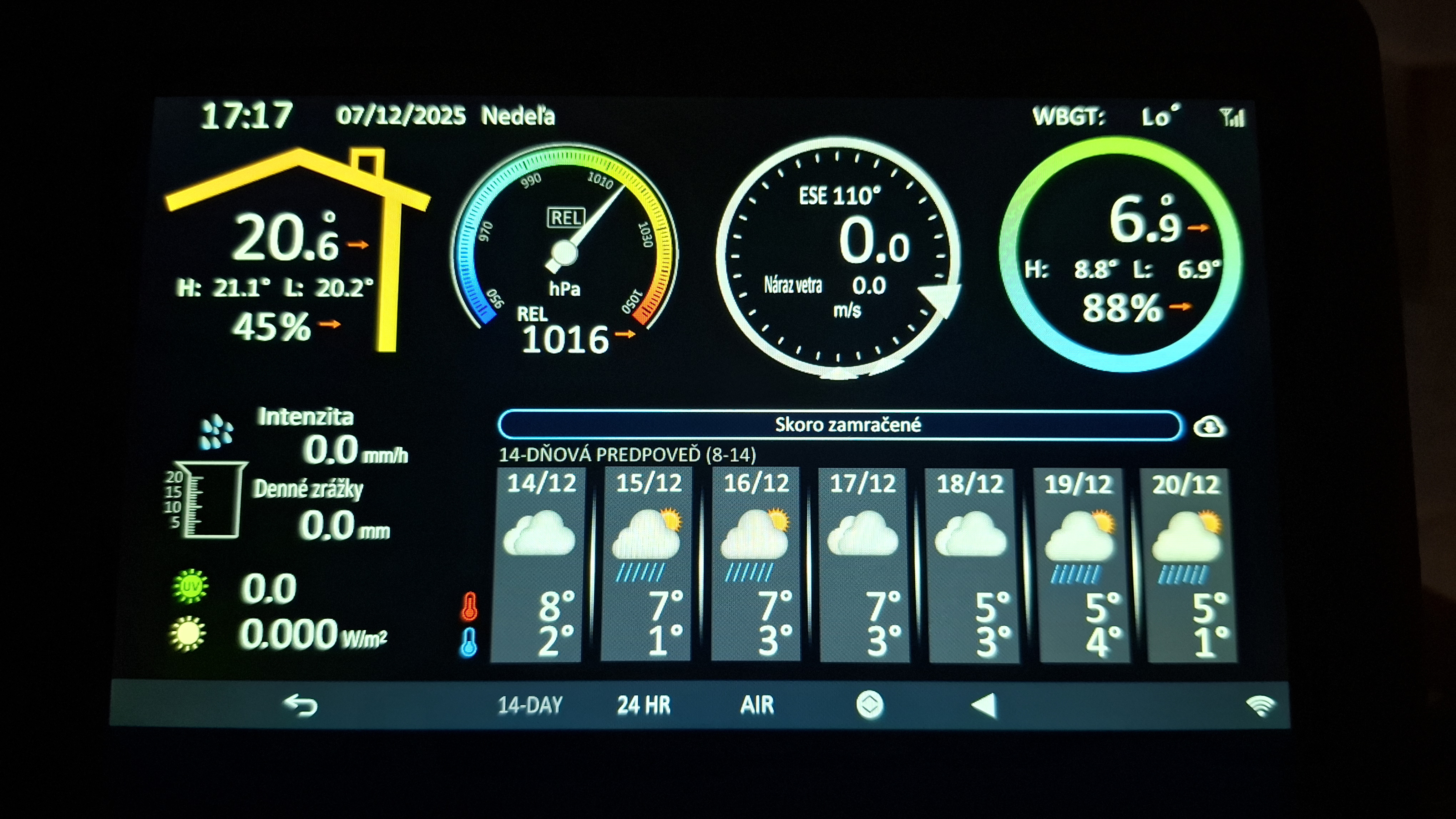 Nad Karpatmi a Balkánom sa nachádza stred rozsiahlej tlakovej výše. Po jej zadnej strane k nám prúdi vo vyšších vrstvách ovzdušia od juhozápadu veľmi teplý vzduch. Prevažne zamračené a hmlisto. Na horách a ojedinele aj v nižších polohách, jasno až polojasno, najmä na Orave a pod Tatrami. Lokálne mrholenie, najmä v južnej polovici územia. Zrána výnimočne poľadovica. Najvyššia denná teplota -1 až 4, ojedinele, najmä pri zmenšenej oblačnosti, okolo 6 st. Teplota vo výške 1500 m okolo 6 st. Slabý, na západe a východe miestami juhovýchodný až južný vietor 2 až 7 m/s (5 až 25 km/h). Predpokladané množstvo zrážok: do 2 mm.