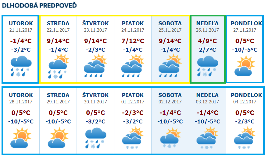 Obr.: Aktualizovaná dlhodobá predpoveď z utorka 21.11. 2017 /http://meteoinfo.sk/predpoved-15-dni/