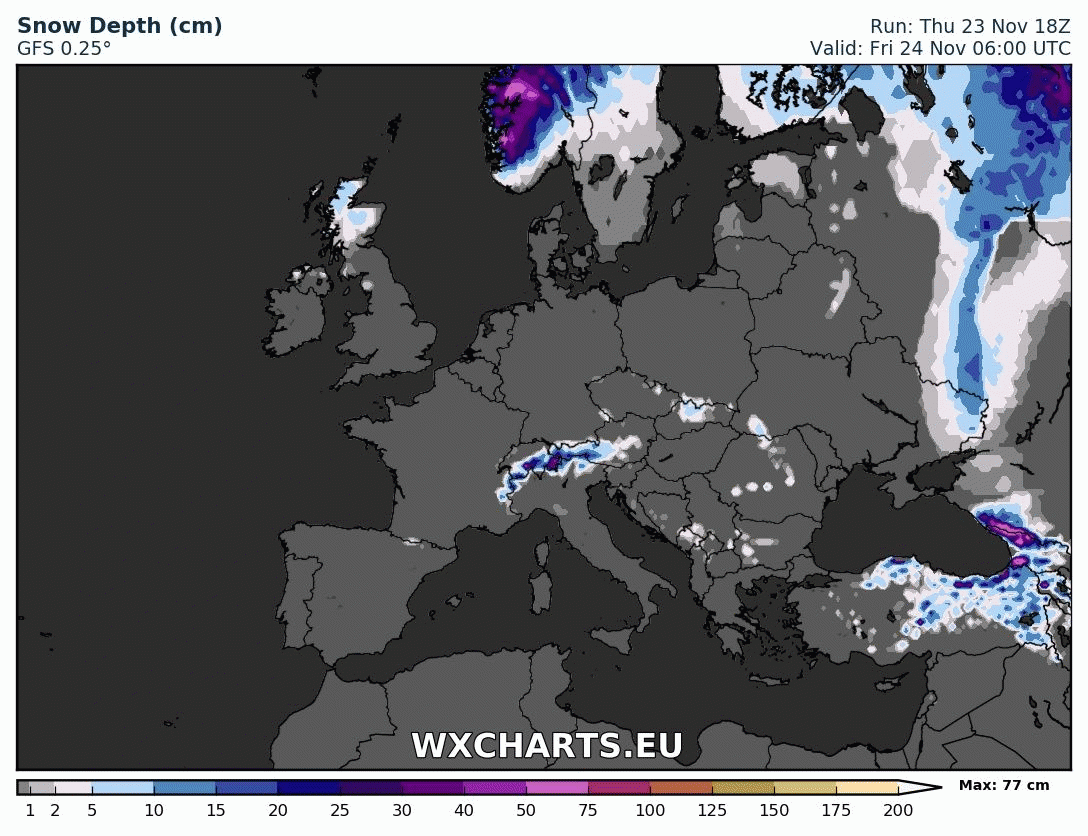Hoci od stredy do soboty nás sklamalo nežiadúce oteplenie, naše zimné vyhliadky sa nakoniec len trochu oneskorili. Už tretí deň sa totiž potvrdzuje dlhotrvajúce ochladenie, ktoré odštartuje už o 2 dni - v nedeľu 26.11. a zima bude počas neho postupne zosilňovať. Kým od pondelka do stredy už očakávame zosilnenie ranných mrazov, zo stredy na štvrtok sa prepadne nad Jadran stredomorská níž, ktorá podľa posledných výstupov môže už okolo 30.11. priniesť intenzívne sneženie - vrátane juhozápadu. Ďalšia šanca na sneženie by mala byť už 2.12. od severozápadu, pred Mikulášom sa zrejme len krátkodobo oteplí a zima sa rýchlo vráti.