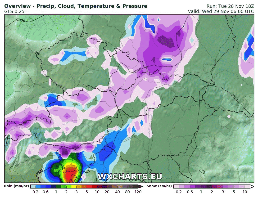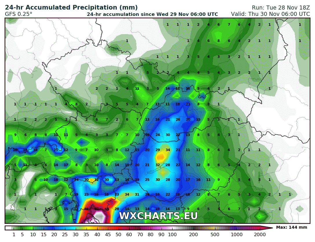 Obr. Naša grafická regionálna predpoveď na stredu a štvrtok 29.-30.11. 2017 /homepage/