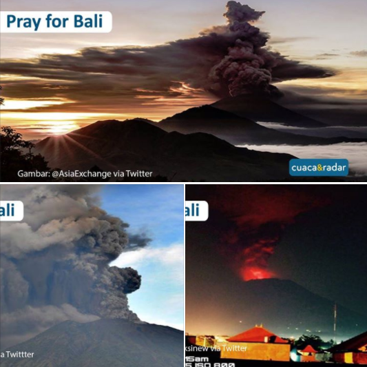 Obr.: Očakávaný výbuch sopky Mt. Agung v Indonézii zaznamenaný v posledných dňoch, v najbližších týždňoch sa sopka pripravuje na veľkú megaerupciu /Cyclone of Rhodes FB/