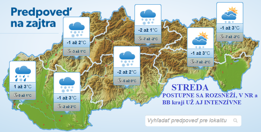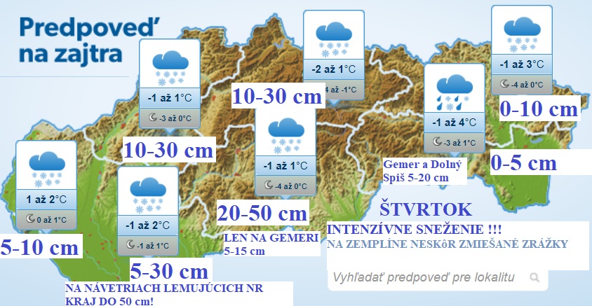 Slovensko zasiahne snehová kalamita, v Banskobystrickom kraji napadne až 20-50 cm, v Nitrianskom, Trenčianskom a Žilinskom 10-30 cm, v Bratislavskom a Trnavskom 5-10 cm