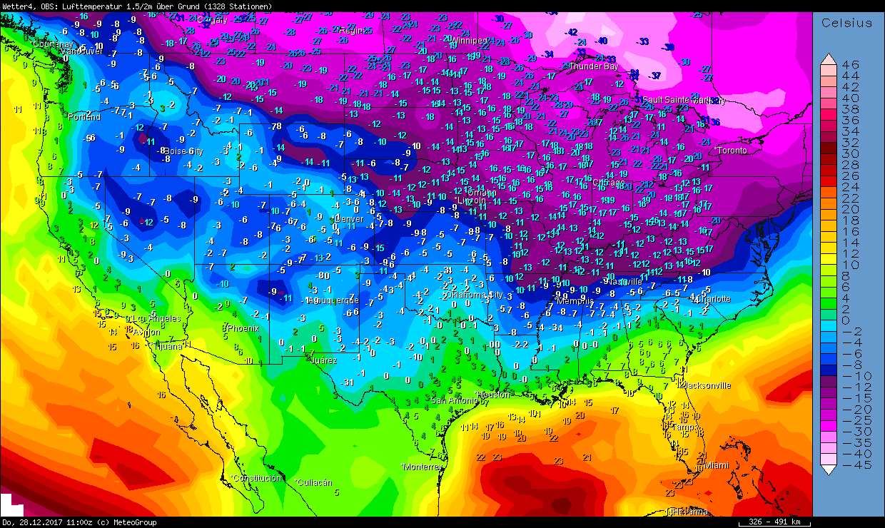 Aj keď nová dlhodobá predpoveď je o niečo miernejšia, po teplejšom úvode roka by naozaj malo prísť veľké množstvo zrážkových udalostí, ktoré budú spojené medzi 5.-15. januárom s príchodom polárneho vortexu. Severné Slovensko už aj 5 dní zotrváva v predpovediach stabilne v silnom náveternom prúdení, s rizikom snehovej kalamity, smerom do nížin bude sneženia a snehovej pokrývky menej a dažďové zrážky sa budú objavovať častejšie. Zimné podmienky by sa však postupne počas celej prvej polovice januára mali zlepšovať a zdá sa, že v polovici mesiaca k nám naozaj dorazia extrémne silné mrazy. Dôležité bude, aby sa vortex nestiahol viac smerom na Arktídu, ale aby sa tlakové níže prepadali ďalej na juh, aby sa Sibírska/Grónska výš so studeným vzduchom, ktorý momentálne trápi Severnú Ameriku, mohla presadiť aj strednej Európe. Silné mrazy by sa mali začať objavovať v našich predpovediach už v najbližších dňoch. Kanadu a USA v týchto dňoch trápia naozaj extrémne silné mrazy - v Michigane na severe USA namerali v piatok rekordných -40,6°C, Kanada hlási až do -46,0°C a okrem 1,5-metrovej kalamity v okolí Veľkých jazier zaujala aj zaznamenaná pocitová teplota pri blizzarde na Mt Washington, až -65°C! Teploty v 850 hPa nad polovicou USA dosahujú len -15/-25°C a extrémny chlad sa pomaly začína presúvať nad Grónsko a severný Atlantik.
