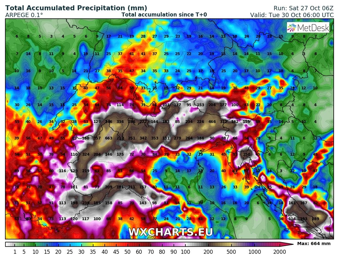 Úhrn zrážok do 30.10.2018 (zdroj: wxcharts.eu)